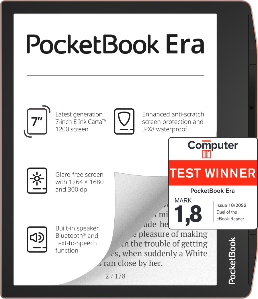 Uznávaný nemecký časopis Computer Bild určil model PocketBook Era za jedného z dvoch víťazov svojho rozsiahleho testu čítačiek e-kníh. Je to ďalšia cena pre jednu z najlepších čítačiek e-kníh roku 2022!